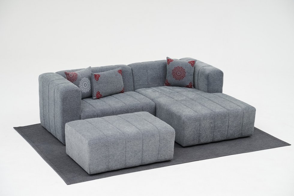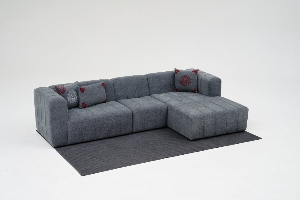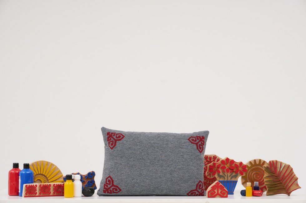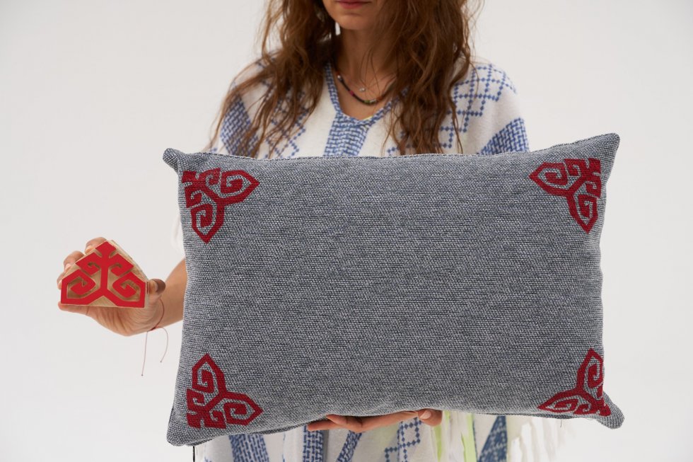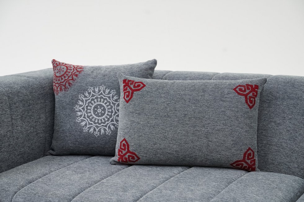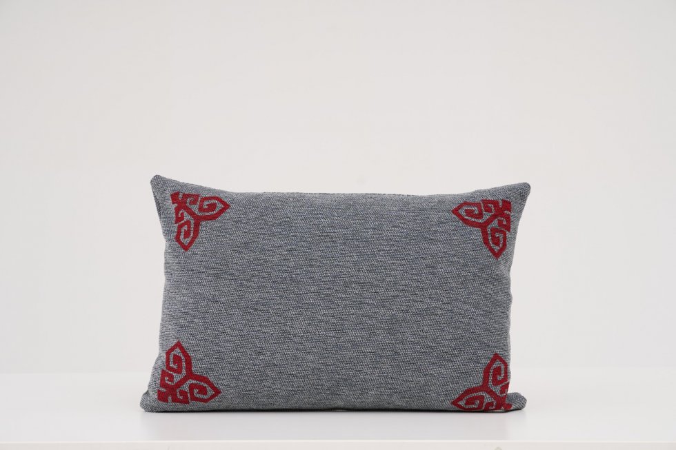 SENS Rin Model Şönil Kumaş Koyu Gri Renk Kırmızı Etnik Desenli Dikdörtgen Kırlent 40x60